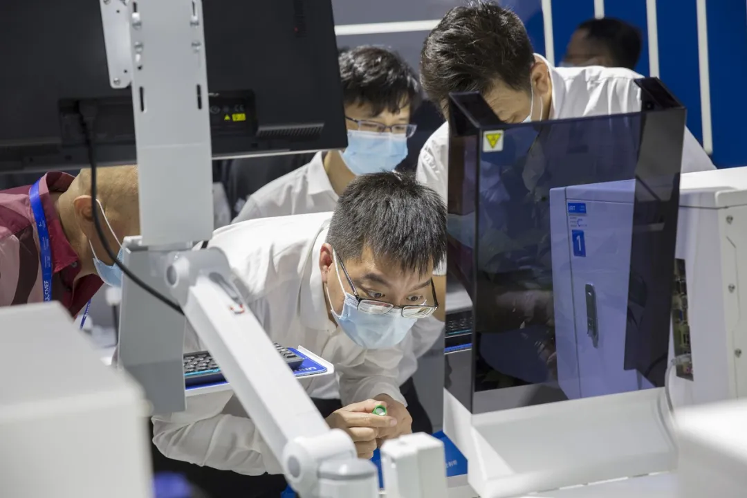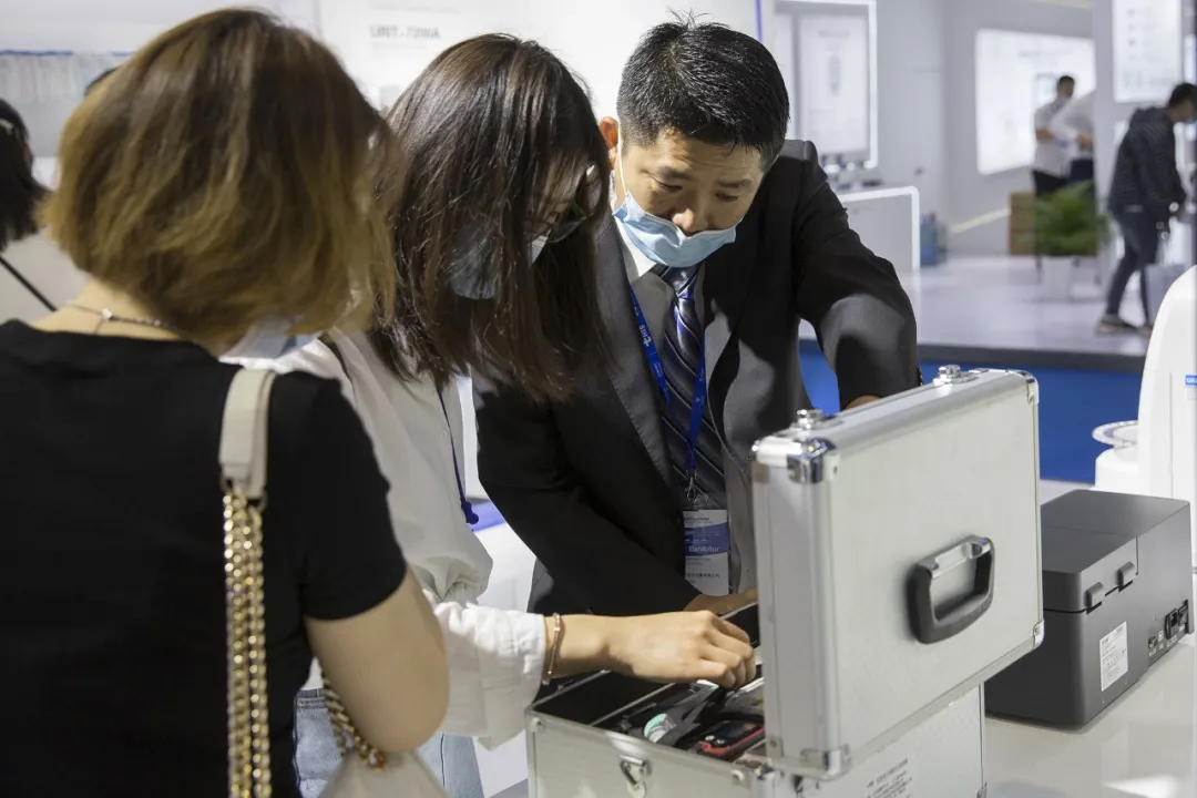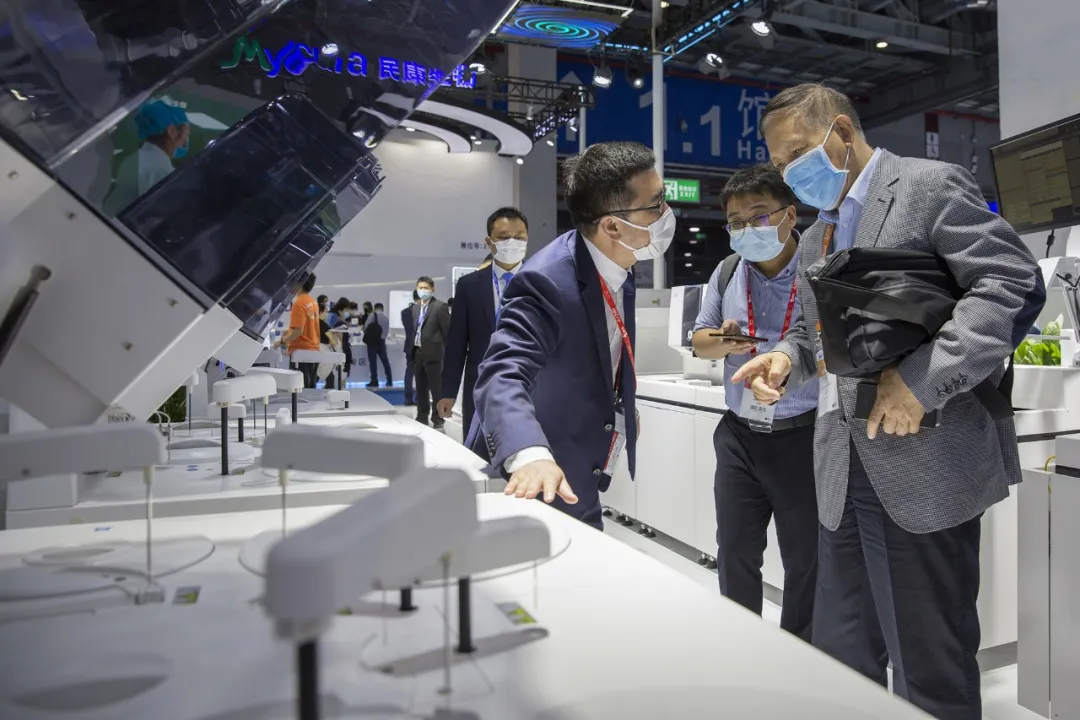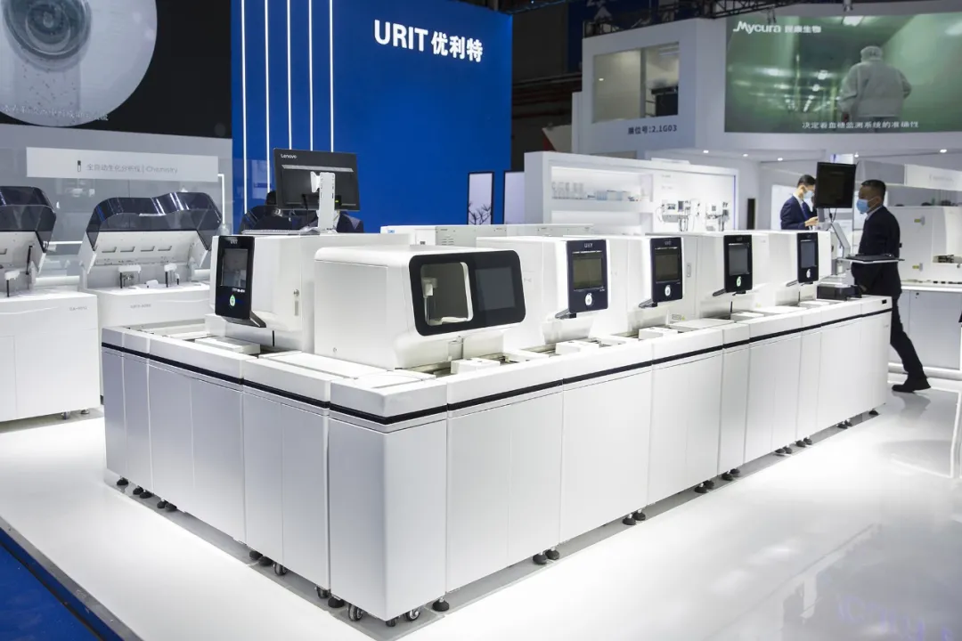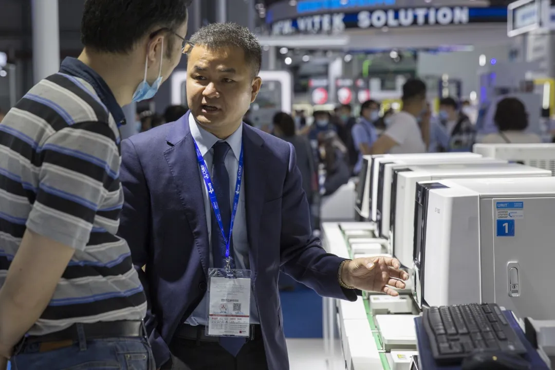 2021年,優(yōu)利特多款全自動生化分析儀入選第七批優(yōu)秀國產(chǎn)醫(yī)療設(shè)備遴選,白求恩精神研究會檢驗醫(yī)學分會會長董書魁先生蒞臨優(yōu)利特展臺參觀指導(dǎo)。