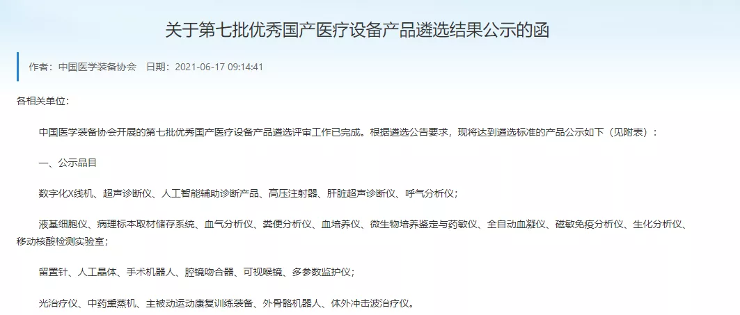 近日,中國醫(yī)學(xué)裝備協(xié)會最新發(fā)布了《關(guān)于第七批優(yōu)秀國產(chǎn)醫(yī)療設(shè)備產(chǎn)品遴選結(jié)果公示的函》的通知,公示了達(dá)到遴選標(biāo)準(zhǔn)的產(chǎn)品,優(yōu)利特申報的12個型號全自動生化分析儀全部上榜,成功入圍率達(dá)100%。 優(yōu)秀國產(chǎn)醫(yī)療設(shè)備遴選工作評選標(biāo)準(zhǔn)嚴(yán)格,過程規(guī)范,從2014年5月啟動至今,一直是國內(nèi)醫(yī)療器械領(lǐng)域的焦點(diǎn)話題,遴選結(jié)果受到國內(nèi)各界人士的高度重視和期待,也成為了各級醫(yī)療機(jī)構(gòu)選購產(chǎn)品的風(fēng)向標(biāo)。 優(yōu)利特全自動生化分析儀第三次入選優(yōu)秀國產(chǎn)醫(yī)療設(shè)備遴選,這既是對優(yōu)利特產(chǎn)品的肯定,也是對優(yōu)利特未來持續(xù)創(chuàng)新的鞭策。未來,優(yōu)利特堅持在自主創(chuàng)新的道路上繼續(xù)探索,加快在醫(yī)療科技領(lǐng)域的突破發(fā)展,不斷推出性能優(yōu)越的產(chǎn)品,讓全球客戶享受到高品質(zhì)的醫(yī)療產(chǎn)品和服務(wù)。